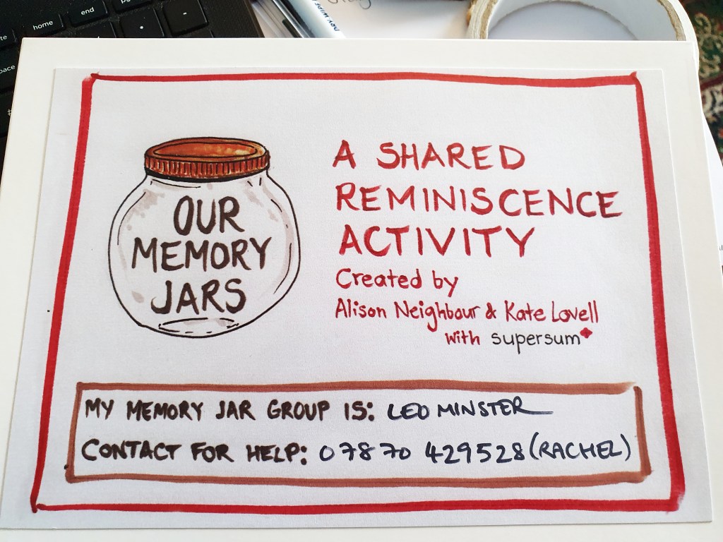 I would like to thank Rachel Freeman from Everybody Dance and who also works closely with Leominster Meeting Centre for bringing us the Memory jar boxes and an amazing idea. We in turn hope to share the jars in the future with Rachel to display for Dementia awareness week in May.