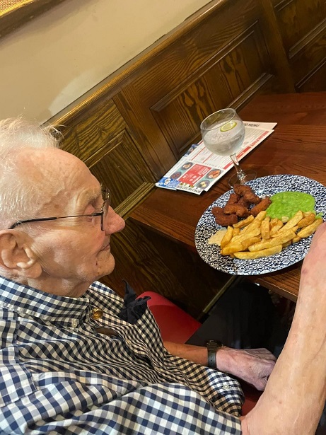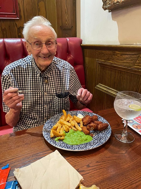 Harold enjoying lunch at the pub