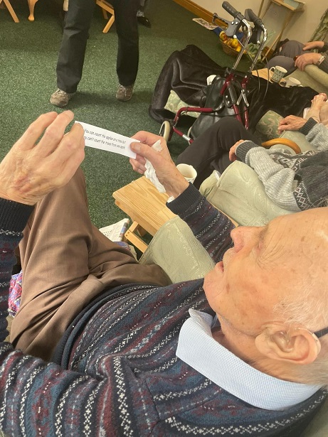 The residents really enjoyed learning and talking about their childhood and the apples they used to pick, also a huge thank you to The Fetch Theatre for arranging for Hilary to come in and see us.