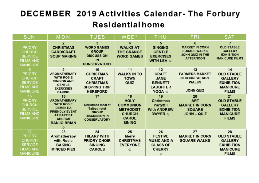 DECEMBER Calandar 2019